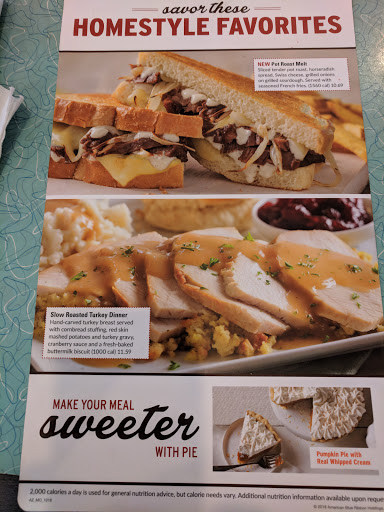 I would rate this location 3 stars possibly 4 but we called before leaving because my wife wanted coconut cream pie to make sure they had it. The manager said he would put one up. We arrived had lunch and even mentioned coconut pie when we ordered. After we finished they checked and all they had was frozen. Otherwise everything was standard diner fare nothing exceptional nothing bad. The manager was at the register asked how everything was we told him he denied being the person I spoke with, but didnt offer to do something to make it right. Im pretty certain it was the same person I spoke with on the phone. Very disappointed with this location.