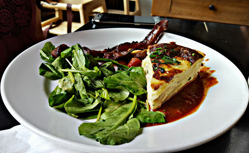 I bring all our out-of-town guests here. This small space with its shabby chic, upcycled decor somehow magically accommodates the always-present crowd without any waiting. I think its because of the way people enter, are greeted by the fabulous host who gives guests a menu and has them queue up to the counter, order, pay, and take a number. By the time you do all that, a table has opened up. You serve yourself your coffee at the coffee bar which is manned by a full-time coffee concierge. Its the best restaurant coffee Ive ever had. And I havent even mentioned the food: its amazing. They do locally sourced food as much as they can. They serve Schrieners sausage, for example. Spanish tortilla, egg, Gouda, sausage-stuffed pita, fabulous French toast, homemade Johnny cakes, and exotic pancakes are among the dishes I recommend.