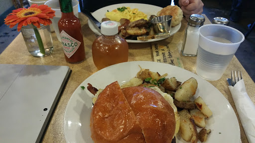 Disappointing and not accommodating. I went here with my family after my daughter ran a 5K. I thought I would have a delicious breakfast. While the bangers were good, the tasteless potatoes were half burnt and half raw. My daughters waffle was also tasteless. On top of this, I am disabled and have difficulty standing or walking, so I sat down at a table while the rest of my family waited in line. A server came and told me to move. I explained my disability and he stll insisted I move. Granted, the policy is order first and then find your seat. But there were four other tables in the area that were empty. The staff should be more understanding and the food should at least have salt on it! I will not be going here again.
