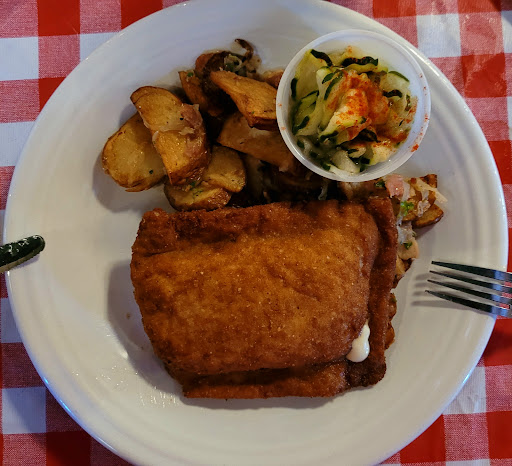 This was my first time at this restaurant/bar and I would definitely go again. Its a laid back and friendly place. Food was good and the waitress was on point. I have no complaints about this place or the employees. I was curious as to the story behind all the dollar bills stapled up all over the place and Im sure if I wouldve asked I wouldve been told. Wish I wouldve asked now lol.