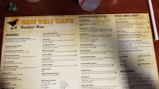 We feel like weve found a gem in the desert. Weve been looking for a great little breakfast spot way out here in the Queen Creek boonies and finally discovered San Tan Cafe. Cute decor, plenty of tables, good prices, delicious food and friendly service. We loved it and will definitely be back asap.