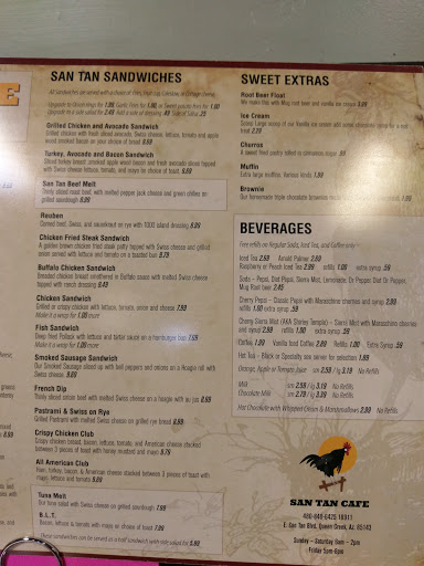 Food is good but service was bad. Our waitress also the manager told is us we were unhappy people then started an argument with us. I would not go there if it was the last place on earth. So if u want to go there so the manager can tell u how to run your family go ahead. I have to say it was the worst experience I ever had so to all my friends you know who you are dont eat at san tan cafe. It not worth the wait.
