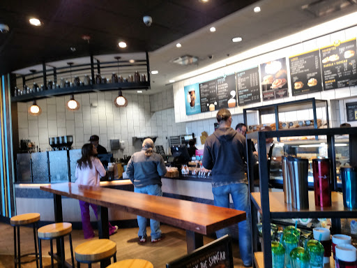 It has drastically gone downhill since the merger with caribou coffee. The staff is never present, orders take forever, the menu has been cut in half. I keep on giving it 2nd 3rd and 4th chances, but Im finally done going there. All I get is 2 butterd bagels and its a hassel. The only reason I did go there is because its within a mile from my house, and it saves me a trip going up to eignstein bagels on Frank Loyd wright and the 101. I guess Ill just have to deal with the drive. Im never going back. The merger experiment has failed!