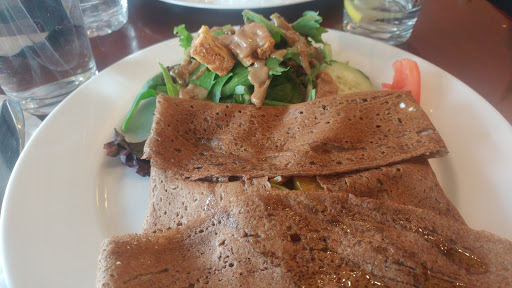 First, the food was ok. I ordered Veggie Crepe, and it tasted just like a regular veggie omelet. The presentation of the food was good. Second, the place was lovely, clean and charming, and good location. Third, the sensitive subject - race (I am an Asian btw). I was behind a group of 4 white people. The receptionist/server, a mid-aged white guy who I assumed to also be the owner of Chez Vous, was holding the door. After the group before me was greeted and walked in, this receptionist/server/owner turned to me and said "how can I help you?", with a blank face while holding the door..... In my mind, I was like What do you mean, dont you want to welcome me into your restaurant first? It felt like that he thought I walked into a wrong place and would point me to the correct place. I might be too sensitive, but at a restaurant, I expect to be greeted with a "Welcome to..." first, better with a smile. There were about 15 customers at that time, all seemed to be white and I was the only Asian customer. Once I sat down, the service seemed to be routine. But I did feel unwelcome at first.