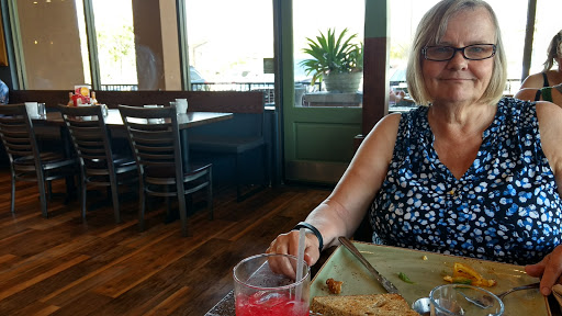 First Watch is a warm and spacious breakfast and lunch restaurant. Dark wood chairs and tables are comfortable and a large outside patio on two sides of the building is inviting. The taste and texture of my poached eggs on cremini mushrooms, chewy potatoes and other veggies was very good. The several mixed juices such as my colorful Morning Meditation were made of all sorts of unusual but healthy and tasty ingredients. Our server was very friendly and helpful.
