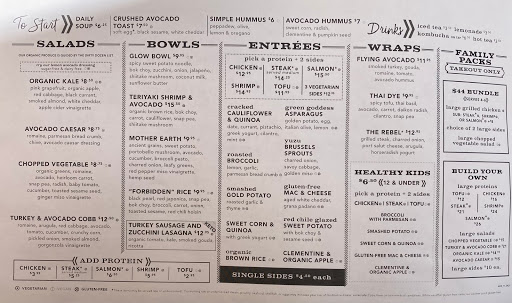 I love this place. The food is so good. As others have stated, its a little over priced and always crazy busy. I hate that there are no nutritional facts provided for this restaurant, or any FRC spot for that matter. If your food is so healthy, why not give nutritional info? Saying its because it is a seasonal menu doesnt work, because really all that changes are the sides, and every season they come back. Im assuming its because really, the food is drenched in hidden fats like oils, just like any other restaurant. Therefore, its not as healthy as theyd like you to think. Your customers are health conscious, and going with a hippy, healthy vibe just isnt enough. I need to know what Im eating! My macros for the day depend on that info. Id eat here more if I knew the nutritional content.