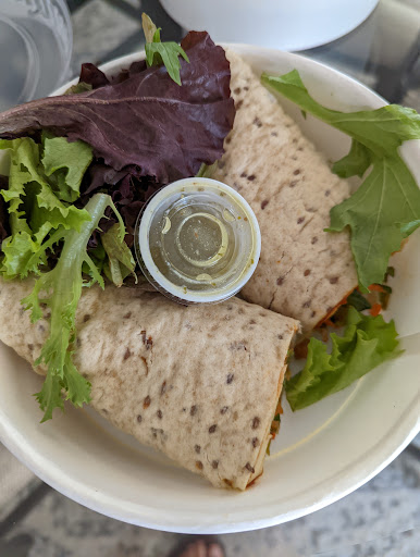 Its always busy and with good reason. Best menu around for the health conscious. I share one of the wraps and a salad when I go with a friend or family member. We usually splurge and have one of the fresh baked chocolate chip cookies for dessert. Love the atmosphere and the friendly staff. You will not be disappointed!