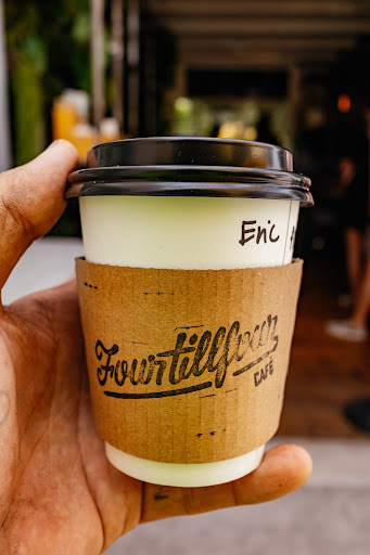 Amazing four barrel coffee with hints of chocolate and honey, crafted by expert baristas into a yummy drink.