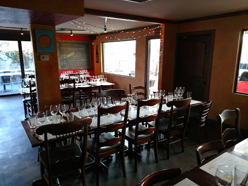 Small place, we ended up seated outside due to a wine dinner happening inside taking up most of the seating. They did have the misters going so they temperature was bearable (it was still over 100° after dark) We started with about 8 people and ended up with 15 or so. Laid back and accommodating. They let us pull together as many tables as we needed. All food and drink is Italian.