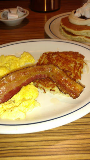 Damian gerson the manager is rude and knows nothing about customer service. The ihop off of raintree is much cleaner with great servers and less grease. Don't servers know to not interrupt you when you are answering a business call? One time is excusable but the continuous interuptions of "do you need anything ?"when you are visibly on the phone is not polite. Don't bother letting the management know because they don't care.