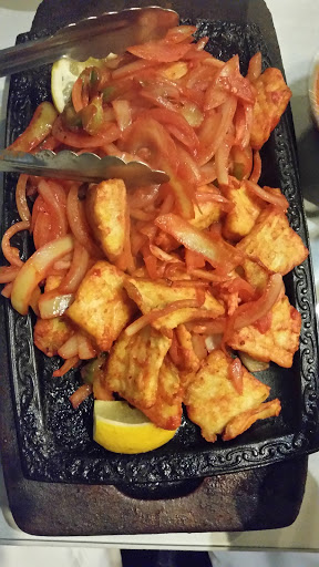 Got chicken vindaloo and Chana masala. Chicken vindaloo isnt supposed to be tomato-based, but here it was. Tasted like a slightly altered version of chicken tikka masala. Chana masala was average as well.