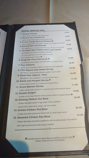 We celebrated my wifes birthday here but the celebration was spoiled by poor service and poorer quality food. My wifes dish was the Filet Mignon with Brown Sauce. When my wife mentioned to the Maitre D that the steak and sauce was tasteless, he suggested she put soy sauce on it (which we only had at the table because I had to get up and get it from the wait station). I dont spend $20 on a Filet to put soy sauce on it. Then she discovered that the steak she had ordered rare was actually half past well-done. I ordered the Grand Marnier Shrimp. I asked for a minor substitute of one rice for another but was told by the waiter that that was not possible without extra charge but is available on the lunch menu gratis. The Maitre D was equally unaccommodating - his attitude was dismissive. The shrimp was supposed to have a Grand Marnier cream sauce but there was very little of it and I found myself mopping the plate to find enough to "wet" the shrimp. The broccoli was cold on both dishes. The waiter was nice but inept...no refills of water and basic Chinese condiments not on the table. If you want consistent, well-prepared Chinese fare, try Flos. The service is friendly, gracious, and accommodating.