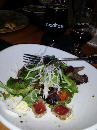 The atmosphere was a nice surprise. Very cozy/modern/hipster-ish. Despite being 98 degrees outside, the open roll up doors felt fantastic! I got the grilled salmon...it didnt blow my mind with deliciousness but their IPA made up for whatever the salmon was lacking. That IPA hit the spot. I live in San Diego but am here for work occasionally, Ill definitely be back.