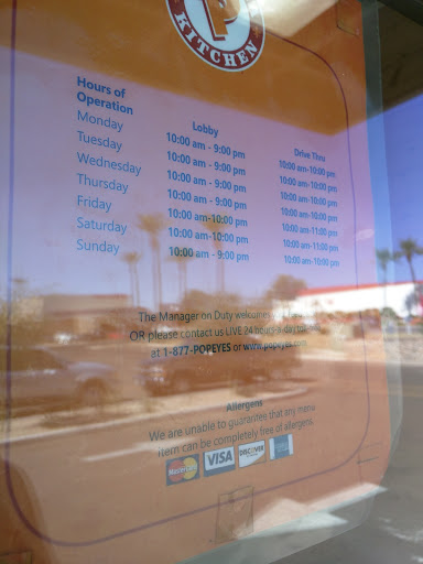 Had a great experience and great food left the establishment as happy as can be got home to cave Creek AZ and realized I forgot my cell phone on the booth in the Popeyes I called them spoke with a wonderful lady named Nancy who frantically searched around the store to help me find my phone found it in the booth and held onto it for me until I drove 45 minutes back up their wonderful experience wonderful staff