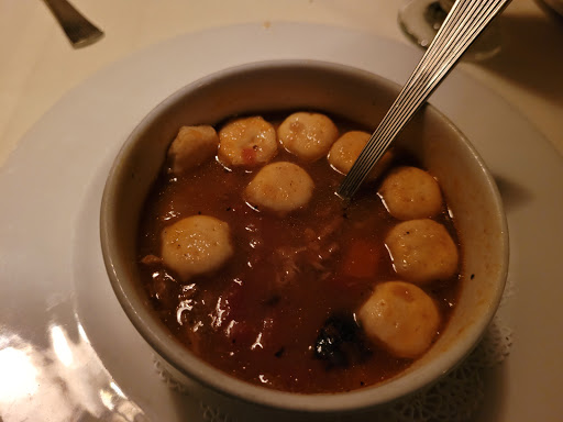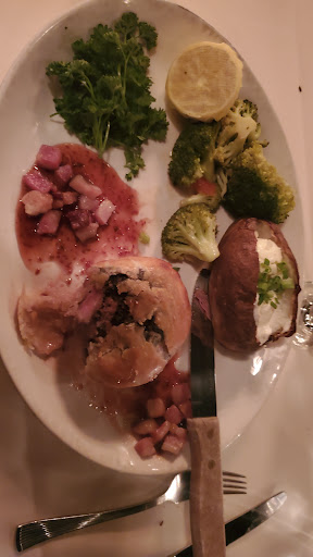 Have you ever been to a place so fancy, that your first thought before you did anything was "Will this make me look like an uncultured swine?" Arriving early for happy hour, before my daughters birthday dinner, we make our way up to the bar, as the first patrons of the day. The no-nonsense barkeep, whose entertained both debutantes and scofflaws alike since the Johnson administration, greets us and in a gravely voice, asks "Whaddaya havin" In the lowest, manly toned timbre I can muster, I reply "An iced tea... please". Looking into his expressionless eyes, I sensed that my drink order may have just broken his spirit. He returns with my frosty beverage, and a basket of sourdough bread. Sourdough bread... its the rich mans "funnel cake". A few minutes later, as we were seated next to Arizonas retired elite, who were downing vermouth and olive juice, scoffing at Ketel One, I noticed a plate of olive oil resting on the far side of the bar (see photo), I proceed to dip my bread... and then notice the viscosity is nothing like Ive ever noticed before with EVOO. The plate of "coarse salt" to its left should have been a clue. Nothing quite says "you dont belong", like dipping your sourdough bread in the margarita lime juice. Needing to salvage dignity, I quickly order the shrimp san remo and fish & chips appetizers... and hoped no one was the wiser. I couldnt try the shellfish dish, but it was probably my daughters favorite dish of the evening. My F&C looked like big puffy cod beignets, and were delicious with their light batter. Our waitress then whisked us away to our white linen-ed table, where another full basket of bread was awaiting our arrival. My daughter commented the feel of the room would go well with Disneys Pirates attraction. After taking our orders, the waiter brings a tiny chaffing glass of yellowish liquid suspended over a candle flame. I just assumed this was a heated bouquet of fragrance, being too intimidated to inquire My daughter ordered her first lobster, and I, my first wellington. Both of our assessments were exactly the same. Im glad I tried it, and I dont feel the need to order it again... ever In time, my curiosity got the best of me, and I inquired as to the canary colored solvent. It was clarified butter. Hmm, what exactly can I do with this clear elixir? It wasnt simply put there for the fragrance. As the uncultured swine that I am, I proceeded to Google "clarified butter", to better understand these fancy-man ways. Ghee, from the hills of India, which contains some unsubstantiated weight loss properties... so I immediately tossed it back... much like the two ladies with their vermouth and olive juice. A fun time was had by both father and daughter, as we bantered back and forth about our misgivings with the dessert menu, as "funnel cake" was noticeably absent As we ascended the staircase back up to our awaiting vehicle, we are instantly transported back from 1800s Spanish galleon to modern day, 104 degree phoenix... while that old, retired lady who was sitting next to you at the bar... you know, the one who had one too many vermouth and olive juices, looks back at you and says "hey, yous can go around me... its gonna take a while" "Gladly, madame... gladly"
