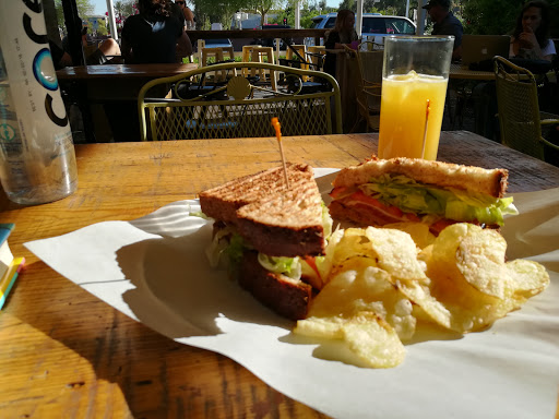 Really great atmosphere indoors and outdoors (with misters in hot weather). Daytime live music can be really nice -- acoustic guitar with soft female vocals. Great selection of beer, including local brews, and good coffee too. The cold brew is great black.
