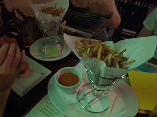 The atmosphere is very Irish. Lots of old tyme artwork and dim lighting. Everything is made of wood. Its a nice place for a quick drink or bite, but definitely not for a date night. Unless your girl likes Irish places, I wouldnt recommend going there. Its a guys bar. The drink list is great with a variety of IPAs, Malts, and other Craft Beers. They occasionally have live music which is WAY too loud. They need to tone it down, it was the center of attention, whereas most other places have live music as a background sound. Almost rock concert loud. Other than that, I definitely recommend this place.