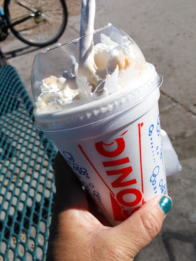 The carhop took my cash, bid us “goodnight”, and didnt give me the change. It was less than a buck, but what kind of manners is that? I couldnt even point it out to him or any of the staff, because this Sonic has people pull up and wait in line past the drive-thru window, and the people behind me already had received their orders and were waiting to go. Im left wondering if that particular guy has noticed this and makes a habit of keeping customers small change, betting they wont park and come in to complain because its not worth their time. Rude. I ordered a lemon pie shake. I got a coconut cream pie shake with lemon wedges in it. I KNOW this isnt how Sonic makes those shakes, because Ive been having them all summer. This one tasted bizarre, and I kept choking on lemon seeds. Halfway through, I traded it to my sister for her strawberry shake. There were chunks of fibery stuff in the strawberry shake that didn’t taste like strawberry, so I checked the receipt to see if they didnt add pineapple bits or something... and then I notice I was charged extra to make the shake strawberry. Is that normal? Isnt strawberry a basic shake flavor? Thats what it says on the menu, anyway... I mean, what flavor is just "shake" without vanilla, chocolate, or strawberry? According to this receipt, I can just order "shake" next time if I don’t want to get charged extra. Anyway, I found out what those fibery bits were: rotten brown leaves from the strawberry caps. C’mon man, that’s where the salmonella risk is.