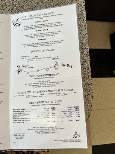 Roaches and small flies! I visited the Sugar Bowl on two different occasions. I had an intense craving for a great banana split and decided to visit the establishment. I must say, the sundae I ordered was FANTASTIC. However, the service was terribly slow (it took ten minutes to get a diet coke after sitting down). Refills on the drink were pretty speedy though. Overall my first experience was far. The second visit, I took my 19 month old son. I ordered the Patty Melt and ice cream to share. My son was in a terrible mood and finally fell asleep in the booth. While he was sleeping I LITERALLY watched a cockroach walk directly over his face (one of those little german roaches). I killed the bug and started looking around the restaurant with a sharper eye. Three more cockroaches on the floor beneath my table and the customers next to me had one walk over their foot. I also watched one of the wait staff sneakily step on a roach in front of the ice cream bar and then kick it under the furniture. The underside of my table and the one next to me was COVERED in small flies. They didnt look like fruit flies but some sort of small housefly (approximately half the size of a normal fly). The service was again slow and the Patty Melt was a total let down, greasy, poor quality meat, and just overall disgusting. Again, the Ice Cream was fantastic though. Though the Ice Cream is wonderful, I will not be returning. If the dining room has that many roaches, I can only imaging what is lurking in the kitchen.
