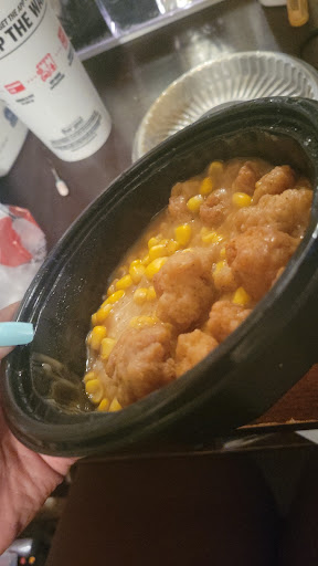 worst restaurant ever, been to many kfc, but this one must be closing for company not to care, all employees, have shirts out, I was greeted after 7 minuets standing with no one in front of me, what do you want is how can I help you, no straws, no forks, asked for a cup of water in addition to my 18 dollar order and said sorry we out of water cups, no one is wearing gloves, manager using bare hand to grab chicken and cut up,. Unprofessional must be closing soon, never again in that so-called restaurant.