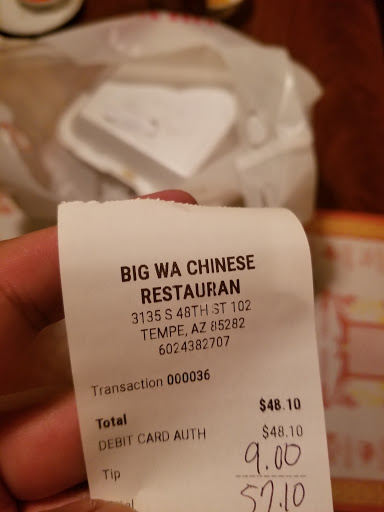 Love there food and service always drop of on time and i always leave a tip thank you BIG WA CHINESE