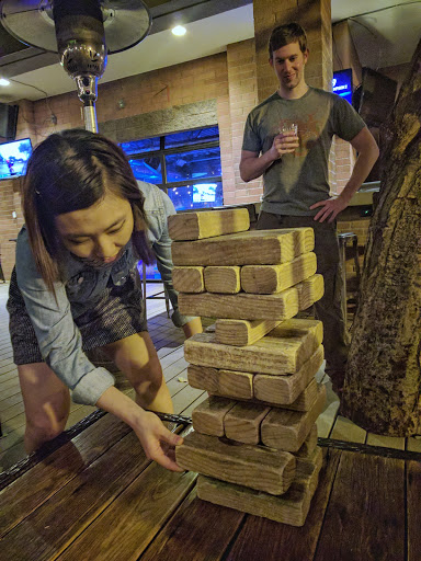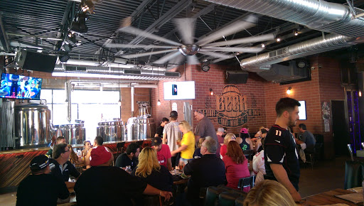 Offered water as I sat at the bar on a Friday afternoon. Darker clubier atmosphere with louder pop music and female barkeeps with tight tank tops. Lots of beer taps and big bins full of fizzy yellow beer. 5 house made beers on tap when I visited (and fresh beers on deck in back evidenced by condensation on the fermenters). House beer pretty good. Outdoor patio.