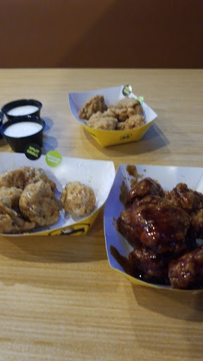 I absolutely could not wait to get home and write this review... heres why! This place sucks more than any wing restaurant Ive ever visited. Now normally i would talk to my waiter or the manager before doing what I did, which was to walk out without eating or paying for the food. Wanna know why... well heres a few good reasons.... 1.) Asked for a 10 wing combo only be told they only serve 9. Really, are you so fricken worried about profits that you cut the basket to 9 wings? 2.) See the attached photo of the "wing" that was served. This and more than half of the wings in the basket looked like this. This is not a chicken wing or leg. This sorry excuse of an anorexic over fried chicken is not what I would pay for... period.. not even 10 of them much less 9! 3.) Uh, check out your competitors. They serve 10 meaty wings! 4.) Not unique to BWW (Bogus Worthless Wings), but this place needs to figure out if its a nightclub or a restaurant. Seriously, when the music is so loud you cant hear the waiter, let alone your friends, whats the point of dining in. Its not like it was Super Bowl Sunday! You guys seriously need to figure out what the hell is wrong. In the meantime, everyone reading this review do yourselves a favor and go right across the parking lot to Canes and get some REAL FAT JUICY chicken at HALF the price. Oh and the folks taking your order can actually hear you. I had $45 worth of gift cards that I intended to use during the visit. I ended up giving them to a homeless guy on the street on my way home.