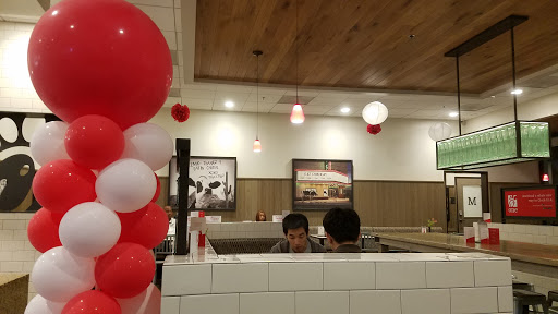 Food is standard Chick-fil-A chicken sandwiches and pieces. I like the chicken nuggets/tenders with ranch and honey mustard dipping sauces. I would avoid the chicken wrap as it was pretty dry and flavorless. The restaurant is clean and the service is really really fast. They bring the food out to you by the time you find your table. Note that the bathrooms are locked with the door code listed on your receipt.