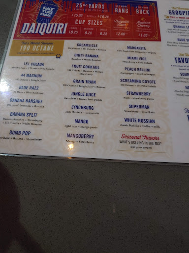 Good food and drinks. They have the everclear infused slushy machines on the wall and I havent been disappointed by any of the flavors. Evenings and weekends are usually crowded with a college age crowd.