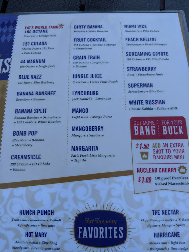 Dear Fat Tuesday, Your bartenders are nice enough. However, a Jack and Ginger is not Coke, Lemonade, and Jack Daniels. Please inform customers when you dont have a requested item. Nice enough to replace it but with FAR less liqour upon remaking to drink as just a Jack and Coke. Ripppppp