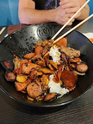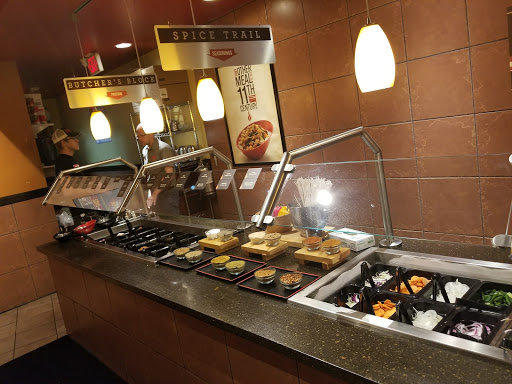 This restaurant is located in the Tempe Marketplace. After youre seated and have the basics explained by a server, you take your card to the food line and make your selections of which there are many. I was impressed with the variety of meats prepared in different styles. There are three sizes of bowl to choose from, and plenty of meats and veggies to fill it. Also there are various seasonings and oils. Depending on the size bowl youll get one to three sides of rice or noodles or what not. These actually come in your bowl when it is delivered to your table. Overall, it is kind of a strange way to order the food, but it was quite tasty, and I will return. My only issue is the cost which was kind of on the high side. Expect to pay no less that $15 for a meal.