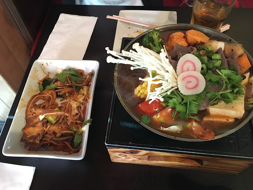 First of all, it has to be a pretty horrible dining experience for me to even bother writing a review. On the same note, it has to be a REALLY horrible experience for me to leave no tip at all. Even if the service is bad, I usually tip minimum to respect the wait staff. My husband I and dined here tonight and ordered 2 hotpots. My hot pot was already boiling when it arrived but my husbands wasnt. In fact, my husbands hot pot never boiled and we had to have them get a second sterno and it still never boiled. Finally we asked for the bill. The waiter asked why we didnt eat the second hot pot - "uh, it never boiled." He said the sterno must have gotten soup in it and apologized, but they still charged us for it. Seriously, we were served inedible undercooked food and they still charged us for it. Dont go here!
