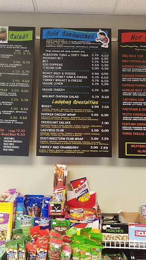 Lady Bug Cafe is located in the office complex I work in. Ive eaten here many times and always been happy with what I get. The family that owns the cafe is always very friendly and happy to see you. The food selection is actually pretty diverse for an office park cafe, but consists mainly of great sandwiches and salads. Service is QUICK! Some of the sandwiches might be a little on the pricey side for what you get, but something I really like is that you can order any sandwich or salad in a half size, for roughly half the price. My favorite is the Bogey, which has turkey, avocado, and bacon. If you work in the area, give them a shot. I think youll like them!