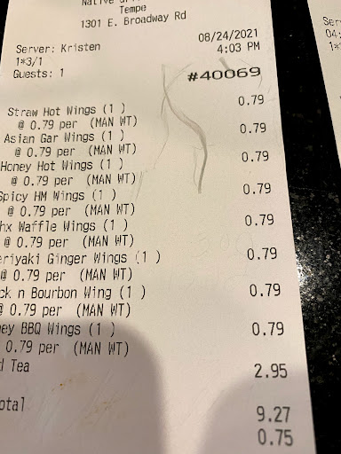 Sorry below post was an experience of a friend of mine, but with his experience I wont be making any take out orders from this store. Mr Wilson should be fired! Went to my son birthday get together at native on Broadway in Tempe. While there the table we seated at were stickier then a lollipop out of a three year olds mouth, had the sever rewipe the tables and were even more sticky ! My future daughter-in -law kept saying sorry that she had called a week prior to us coming into make reservations to make sure they would have tables set up for the twenty of us and adequate severs to take care of our party. But to no avail nothing was prepared or written down or even done for the number of people that were need to prepare the number were coming in. In fact the one sever ( Joshua) tried to accomplish taking care of us all. After orders were taken our food came out in different order then they were taken, food over cooked, food under cooked! Asked to speak to the manager in the highest position, and out came the gm(general manager) mike Wilson who came across combative, arguetive,with a excuse for every problem we had while being customer at his restaurant . The list of problem are as following- took a reservation the told once there they dont do reservations, tables sticky- table wiped more than once and still sticky, food ordered then coming out in different order time and after others that arrived after us, told of bad/over cooked/ rock hard boneless chicken- told got a message that they was a problem with the 10 min. Ago but nothing done til we asked , also didnt refund but was told he would cook us more.... If they are bad from supplier why would I want more? Ask for a well done hamburger come out medium - told Ill make you another, then told "no" I guess Ill take it off your bill. After Mr.Wilsons rudeness, lying, careless, care of his business, and customers I ask all my friends to also let the powers to be know this not wrong but uncalled for by Mr.Wilson. As a manager he should be a example to his employees, and want to make sure that his customer want to come back to a business where they get good/great service, food, and atmosphere! With Mr.wilson at the helm I or my family will never return, and will ask my friends to not be customer at this location! Please help me in making this location a better place by letting upper mangers know of the problems at this location!
