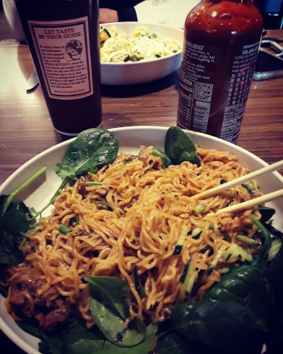 First time eating here.. I really wanted the korean I believe but didnt want it to be too spicey but they told me it is pre-made which was a bummer. I got something else instead and it was good but it could have been so much better. It was simply too plain. Mostly noodles and not enough toppings such as broccoli carrots etc and definitely could have added more meat they didnt give me too much and so my meal was kind of boring and really could have ended differently if they didnt charge so much and then gave me so little. If I want to eat just noodles I might as well save all my money and make a ramen...seriously