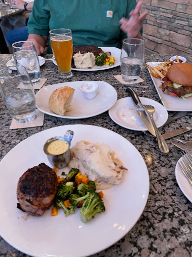 The good: We got the blue cheese fillet, which was excellent. Blue cheese flavor wasnt overmuch and the steak was cooked perfectly. They also had some pretty legitimately good beer. The Fresh Squeezed IPA may now be my favorite beer, and I drink a lot of beer. The escargot was good, but not great. There was a slightly odd sweet taste that just really didnt fit right to me. Their waitstaff was also pretty great. The bad: The green beans were *awful*. Some of the worst I have ever had. Just mushy and gross. Not just a little overcooked, but like boiled for half an hour. No way should something that bad come out of a decent kitchen. These were insultingly bad. Multiple people must have seen these and just gave them a pass because they didnt want to deal with it. We were offered a replacement... at the end of our meal. Which didnt make sense to us at all. I ordered a hamburger, which was only borderline edible. Literally a frozen bubba burger is a significant step better. This one was hard like cardboard, extremely bland, way overcooked, and with a bun that was soaking wet half way through eating it. Im guessing it is only on the menu to placate picky eaters? Or to have a cheaper option, maybe? Home ground burgers can be seriously great, but something like this shouldnt be on a menu at a steakhouse. I expected much better. Again, I was asked if I wanted a replacement, which I declined. Not sure why I would want another bad burger. Not the worst meal Ive ever had, but far from the best. Again, the steaks were the most important part of the meal and they did do them quite well. Overall, we wont be going back.