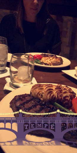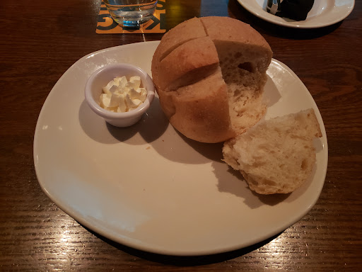 Went with some friends who were visiting. We were seated in a timely fashion, and the atmosphere was lively, though not so loud we couldnt talk at the table. The server was friendly, going so far as to make some conversation while filling water and taking orders. The bread was soft inside, with a nice crunch to the crust, and the butter added a sweet flavor when dipped or spread. I ordered the calamari, and was surprised at how cheap it was, and I was not disappointed by the flavor at all. I was similarly thankful for the price of the 6 oz. sirloin, and when I got it, cooked rare just as asked, it was heavenly. It was not under or overcooked, and was soft, tender, and very juicy, being easy to chew, and melting in the mouth. I was thoroughly satisfied after the meal. Overall, wonderful food with courteous staff, and wont gouge your wallet.