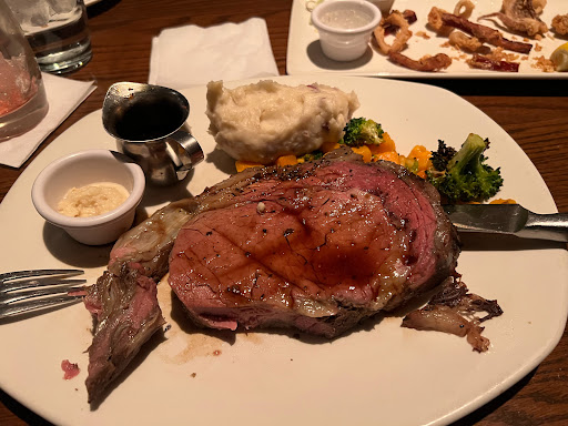 The service was amazing the atmosphere was relaxing and the food was phenomenal. Our server was very social but being funny and professional he made sure he checked on us make sure that everything was good and exkactly how it needed to be. But the prime rib was the Cherry on top. The prime rib was cooked to absolute perfection and paired with both horseradish and Au Jus sauce made this dish simply breath taken.