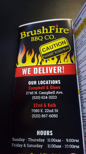 Brushfire has some of the best bbq in tucson hands down, but I will never eat at brushfire again. They have some of the worst service and rude staff. They also have horrible delivery service. Whether I order my food in the store or for delivery, they always seem to get it wrong. Their side dishes are some of the worst in town. Their corn is burnt, their macaroni tastes like mush, their fries are amazing, but their corn bread is not edible, and their potato salad is not great.