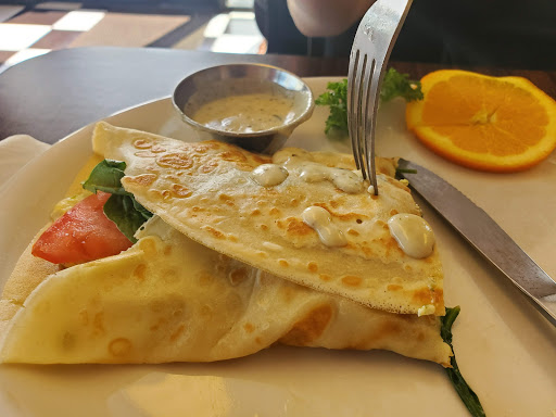 Dining here was awesome. Its the first time I ever tried a crepe. I LOVED IT !!! I had no idea they could be so good. I started out with a savory crepe with eggs, bacon , spinach and tomato. The chef makes his own sauce. Again, DELICIOUS!!! You cant get enough. I was fortunate enough to have room for more. The sweet crepe was AMAZING . It was a wonderful combination of strawberry, banana, Nutella and whipped cream. I really enjoyed the Ethiopian coffee. Great job chef! Youve got a great team. Thanks for your kindness!