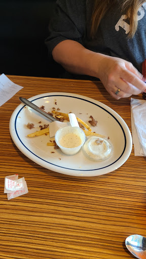 Service was slow. Both our server, Peter, and the food runner, Nadia, asked if we needed ketchup or hot sauce and we said we would like some ketchup. Neither returned with it nor did they return to see if the food was ok. I had to go ask for the ketchup and then again to get to go boxes for the now cold food to warm it at home. When I paid the cashier, she already knew the server in our section was doing a bad job and took 10% off the bill without me asking.