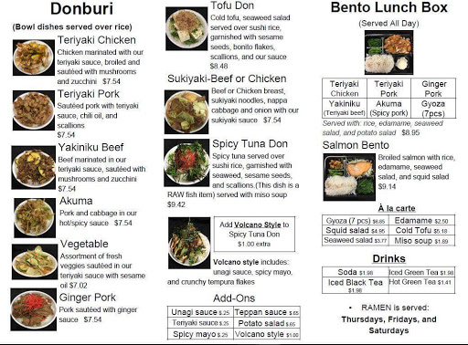 I come here at least once a week for lunch and I LOVE it. It usually gets really busy around noon, so sometimes its difficult to find a table right away, but the wait is worth it. My favorites are The Special (teriyaki chicken over a pile of noodles and rice) and the Spicy Tuna Don Volcano Style. The outdoor patio is nice and they have misters to keep the temperature down a bit in the summer.