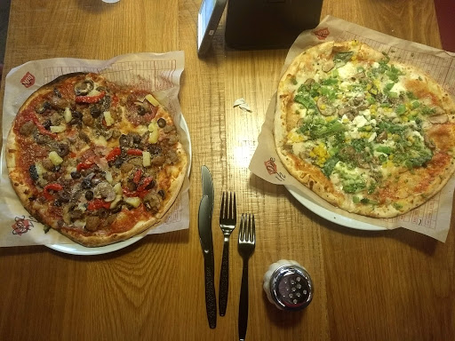 Great seating area. Thin crust pizza. Loved that they didnt cover the dough in oil like some other similar places.