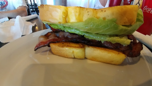I really liked monkey burger, and I am not a big burger eater. First of all they are a local business so I am much happier to give them my $$ than some chain. Secondly, the burgers are super yummy with lots of different and intriguing options; I had the "Vegas Baby", sautéed spinach and onions on a burger? Sold! What I really liked best is that they can make any burger with turkey instead of beef, for me that makes this my go to place if I am ever craving a quality burger. I would agree that the buns can get a bit soggy by the end (depending on your toppings), but they give you a fork and giant steak knife so you do have those to fall back on. Also the sweet potato fries were totally awesome. Don’t listen to the trolls; this place is the Cat’s Pajamas.