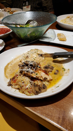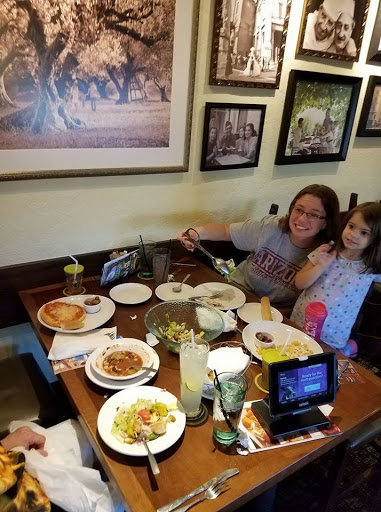 Our first time here and a VERY long time at an Olive Garden. We were excited to use our Gift Cards to do the all you can eat breadsticks, salad and soup for lunch! Food was great as always. We never saw the electronic touch screens at the tables before and the hostess seated us giving the menus and that was it. We were confused as to should we order off the touch screen or is someone coming? A server showed up he took our drink orders and came back for our food orders and refills when needed. At the end I asked for boxes to take home some bread sticks and what the kids didnt eat, he gave us a small black container that could barely fit the mac n cheese noodles so we wrapped up the breadsticks in a napkin. We walked past a table that didnt take their mints and realized we never got any, on our way out I asked that server if we can please have some mints before we go. Everytime we go out, we always tip 20% from the check regardless of service since a lot of times that is that servers or the whole teams paychecks for the week. Maybe next well try Red Lobster even though they are owned by the same company! ;)