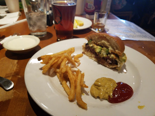 Busy place with a good atmosphere. OK service (sat at the bar) - efficient v personal. Beer was disappointing for a brew-pub. I had an amber ale, which was OK but nothing special, and served way too cold - lager temperature versus what an ale should be served at. Suspect they dont know the difference. But the real disappointment was the food. I had the fish-and-chips, which are usually pretty good in brew pubs. Basically it was a plate full of greasy "string" fries a la fast food style. Bad enough but nothing like as bad as the fish. Thin slivers of some nondescript white fish breaded and overcooked to the point of being rock hard! Inedible. The bar tender did comp one of my two beers when I left the meal largely uneaten. The guy sitting next to me left most of his steak, which looked equally unappetising. Place was busy though. Go figure.