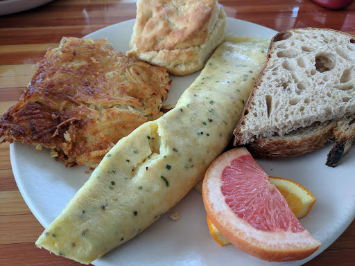 Was actually intending to go to a different place for brunch on a Sunday but the 4th Ave Street Fair made me change my mind to this place. At about 10am on a Sunday there was about a 25 minute wait (accurate) but they offer Presta coffee for waiting customers, awesome! My wife and I were seated at the counter and served by the bartender, Jeff, who was incredibly friendly and positive, great service. I had the french omelette, which is served with a couple of pieces of amazing Time Market bread and my wife had the El Birote sandwich/torta thing. Both were excellent, reasonably priced and filling. Overall, we had great service, great food, and for the quality of the food, a fair price. I would certainly recommend if youre not in a rush!