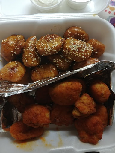 I used to live in Amherst NY and had Buffalo wings every week. These are authentic Buffalo style wings. The medium sauce is just like the sauce I used to taste back in Buffalo. They did not bread the wings or over cook them. The chicken fried rice was not too dry or too moist, and in a large quantity. All the sauces provided complemented the meal. Ill be back.