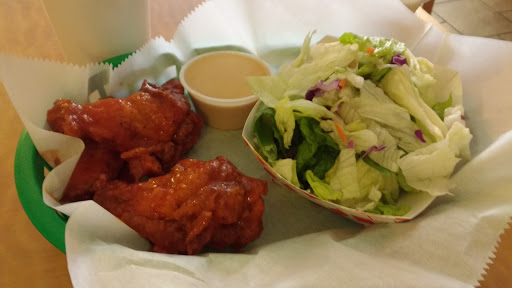 Stopped by here during football season because I had a hankering for good wings. While they werent the worst wings Ive ever had, they certainly werent good. The wings were overcooked, tough and dry. The garlic parmesan wings had absolutely no garlic and I had to douse them in garlic and hot sauce at home so I could eat them. My hubby doesnt like bone-in wings, so I grabbed some of those too. The sauce was okay, but they were literally sauced up frozen chicken tenders. Poor show! The service was fast and the price was okay, but the thing I liked most was the crunchy celery and carrot spears . . . and thats pretty sad.