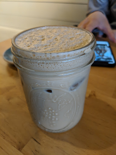 I had an aeropressed cup of Rwandan coffee made by Kyle, and it was a splendid cup of coffee; it was bold without being too sharp, citrusy without being acerbic. Kyle suggested that it might be too dark, but its robust boldness was not overpowering - I love a good cup of black coffee, and Blue Sail makes a darn good cup of black coffee. They have laid a sound cornerstone. I look forward to trying something frillier next time. My wife had a fresh chai tea latte made from recently imported raw chai, a rarity in the cafe world. She said it was one of the best chai tea lattes she had ever had - and to top it off, it was served in a mason jar. The atmosphere is relaxed and homelike, yet with a touch of modern flair. The furniture is arranged in such a manner that the coffee shop can accommodate any size group. A lone coffee drinker can sit at the bar; a small group can cozy up on the sofas around a coffee table; for larger groups, there are 6-person tables that could no doubt be pushed together to accommodate an even larger group. Upbeat yet relaxing lounge music sets a calm tone, and floor lamps gently light up the room. We felt like we could have comfortably stayed there for hours, sipping amazing coffee and watching the world go by. To top it all off, not only were the coffee and atmosphere superb, but the service was knowledgable and personable. Kyle talked with my wife and me as we waited on our drinks to steep (perhaps the only drawback to such high quality coffee is that it cant come instantly - only come if you have 5-10 minutes to spare). He discussed his love of coffee, how he has studied the chemistry behind it all, his trials with perfecting an aeropressed Rwandan cup of coffee, how the proper purplish hue denotes that its perfect, and how he is eagerly awaiting a few more rare blends that should be arriving soon. We discussed local coffee culture, the meaning of the shops name, and more. Kyle was the only one working that day, but he still managed to visit with us and the other customers, all while serving the customers. In short, these guys get it right - a good coffee shop starts with good coffee, is carried forth with a calm homelike atmosphere, and is crested with affable service. I look forward to coming back to Blue Sail Coffee again and again.